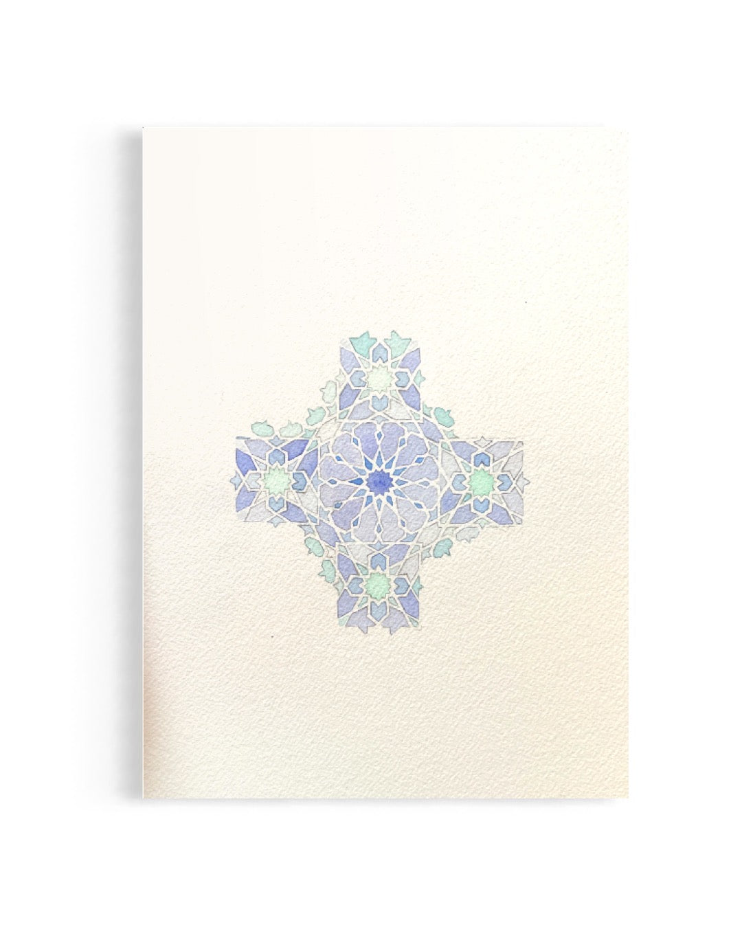 A 12 fold rosette accompanied by geometric elements creating a beautiful pattern like no other.